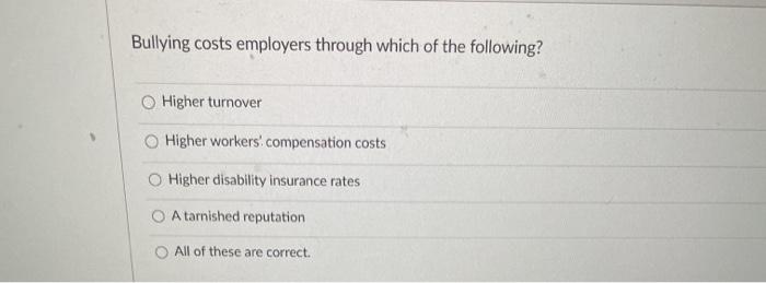 Solved Bullying Costs Employers Through Which Of The Chegg Com